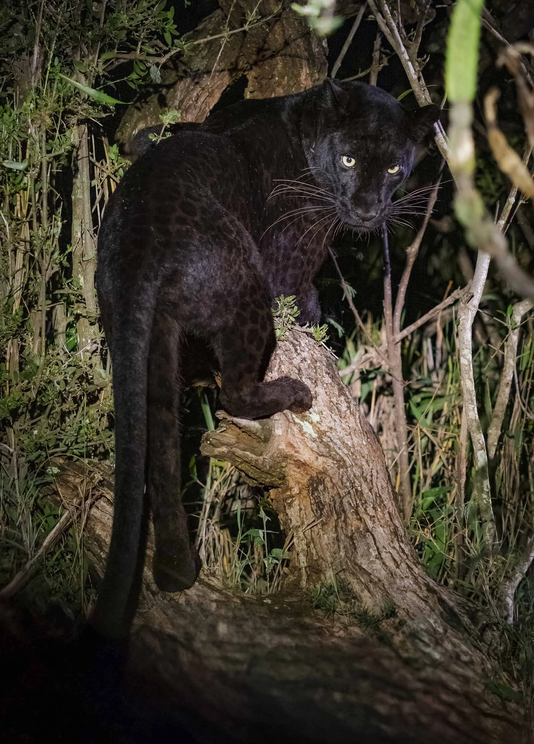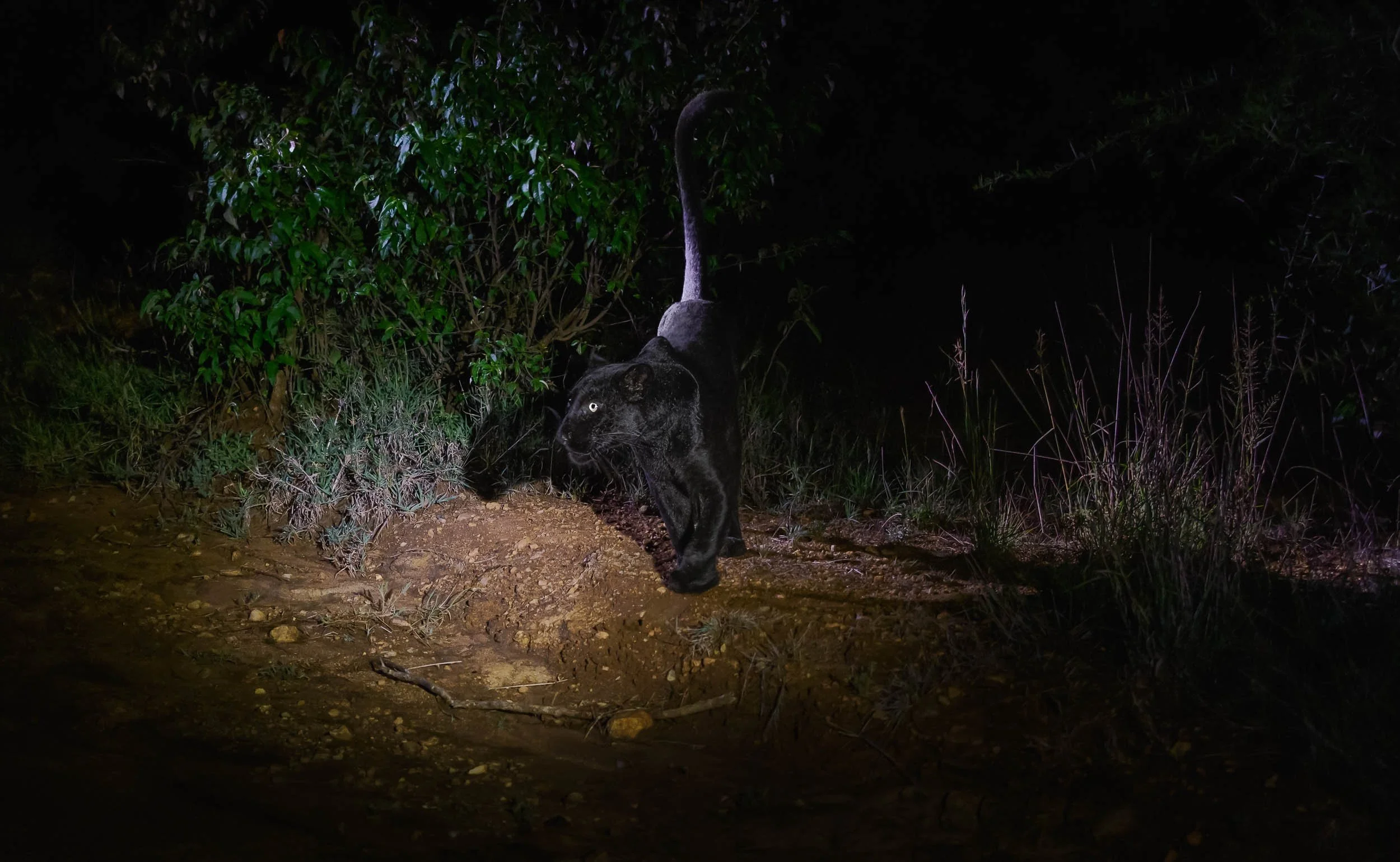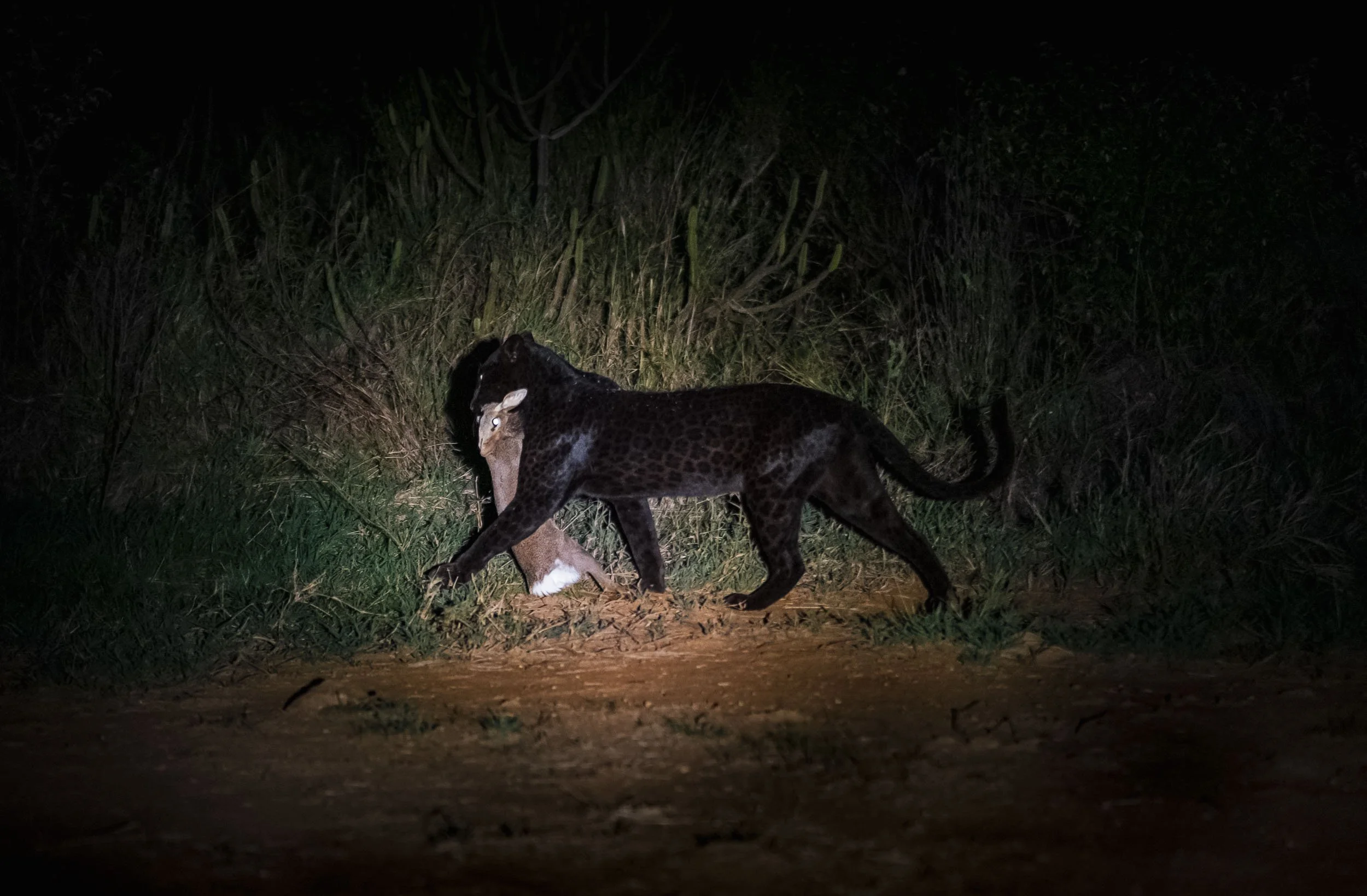 Although several black leopards have been spotted here, a specific individual has been rising to prominence in recent years: a female that has become quite habituated around humans, having grown up near a camp.